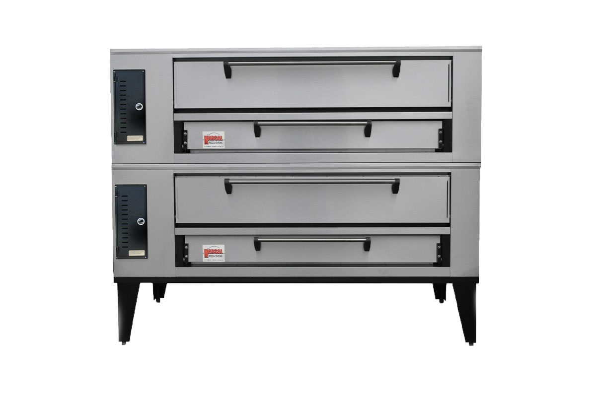 Details: Adjust top and bottom heat to match baking preferences. The series offers two deck sizes: one size fits six 16-in. pizzas and the other, eight. Stack up to two units for four decks total.